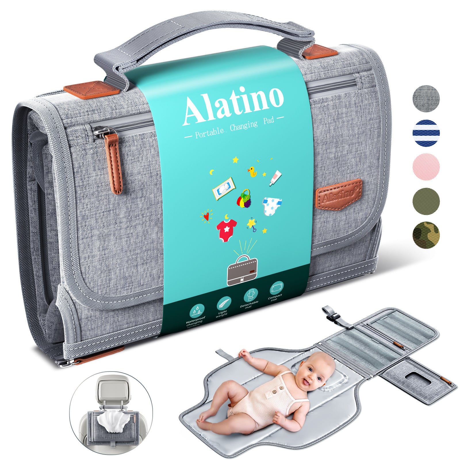 - ONE-HANDED CONVENIENCE; Alatino Portable Changing Pads makes easy work of frequent changes; A rapid-open buckle makes the portable baby changing pad easy to open and unfold with one hand; It is perfect for busy moms or dads who are often on the move and is designed for you to quickly change your baby’s diaper anytime and anywhere